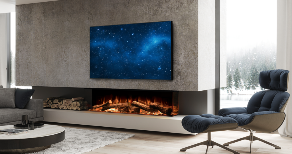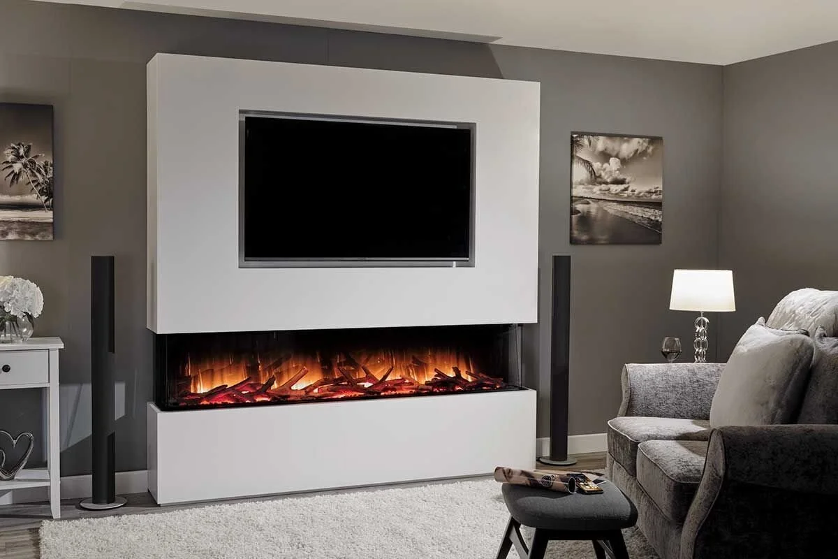 We are specialists in building or constructing or creating personalised bespoke feature walls enhancing your chosen landscape electric fire and choice of large tv with digital integration. Enhance with mood lighting under lighting back lighting designer lighting. No more tv on a stand with your digital box dvd and router shown underneath hide everything behind your feature wall albeit with easy access but having the wonderfully minimalistic look.