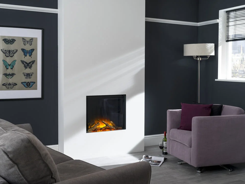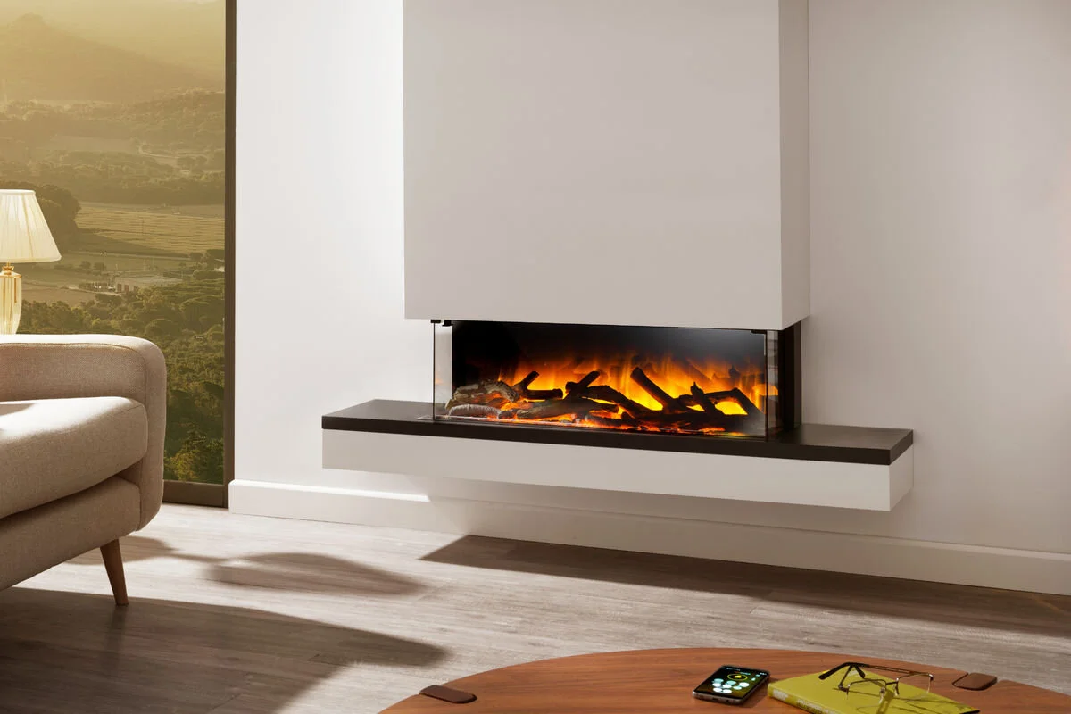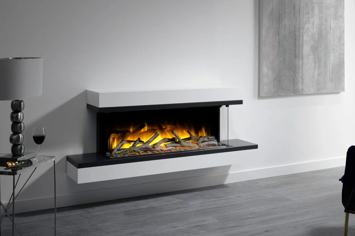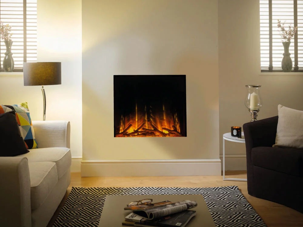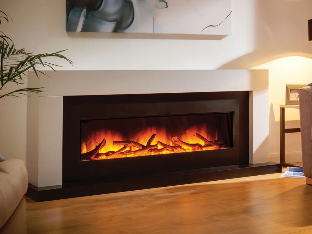 Cinderwood log effect with radiant burn or white pebbles & glass beads fuel effect